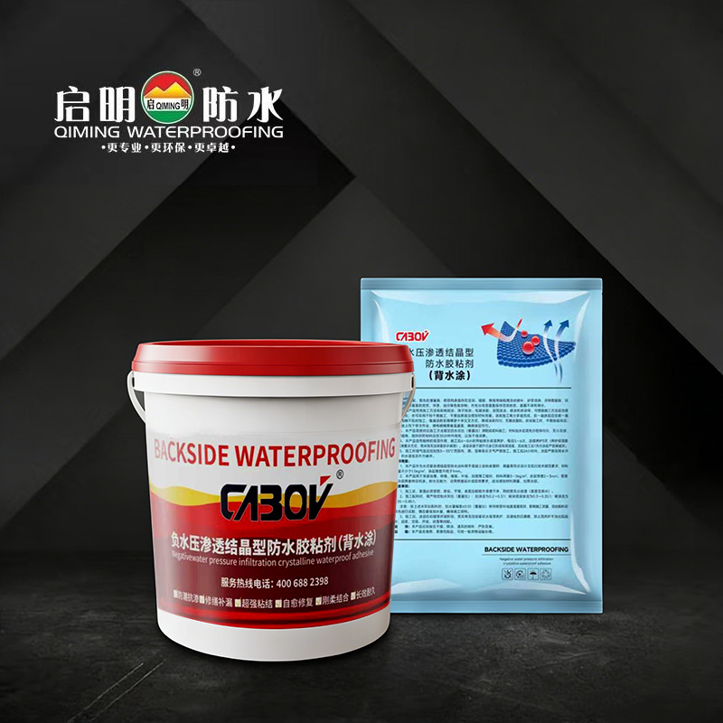 CABOV®负水压渗透结晶型防水胶粘剂(背水涂)是我司自主研发生产的单组分水泥基防水浆料。产品以硅酸盐水泥、精制石英砂为基料,科学复配定量活性化学物质及多种优质外加剂,经特种聚合物改性技术精制而成。产品兼具刚性强度与柔韧适配性,集高抗渗性、高耐水压、高粘结强度于一体,融合渗透结晶核心技术,可自愈修复混凝土细微裂缝与孔隙,密实补强基层结构,赋予混凝土结构持久长效的自防水性能,是一款性能优异、应用广泛、多功能一体化的高分子改性干粉状防水材料。